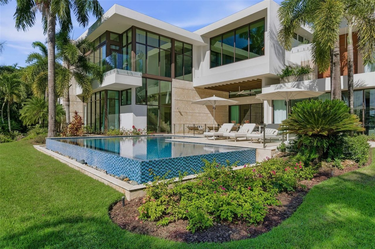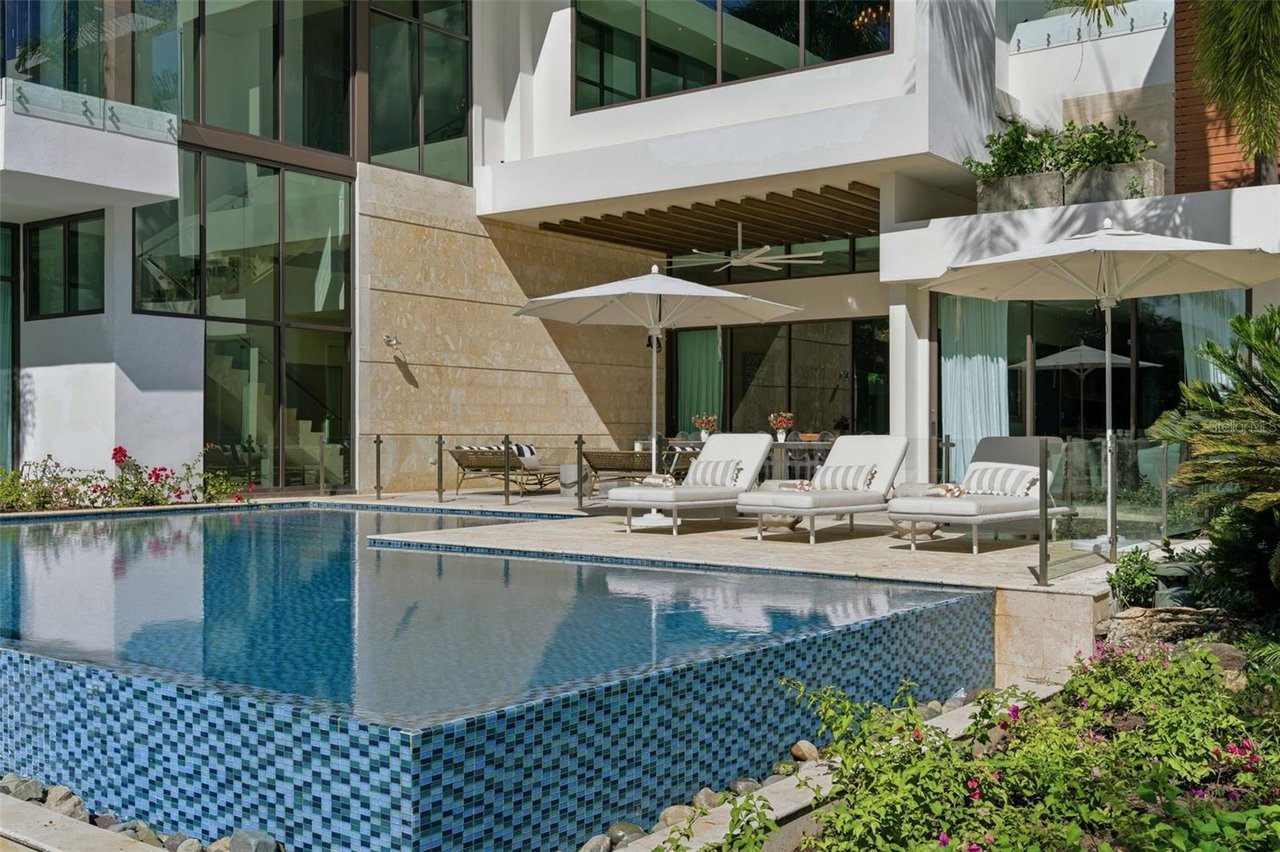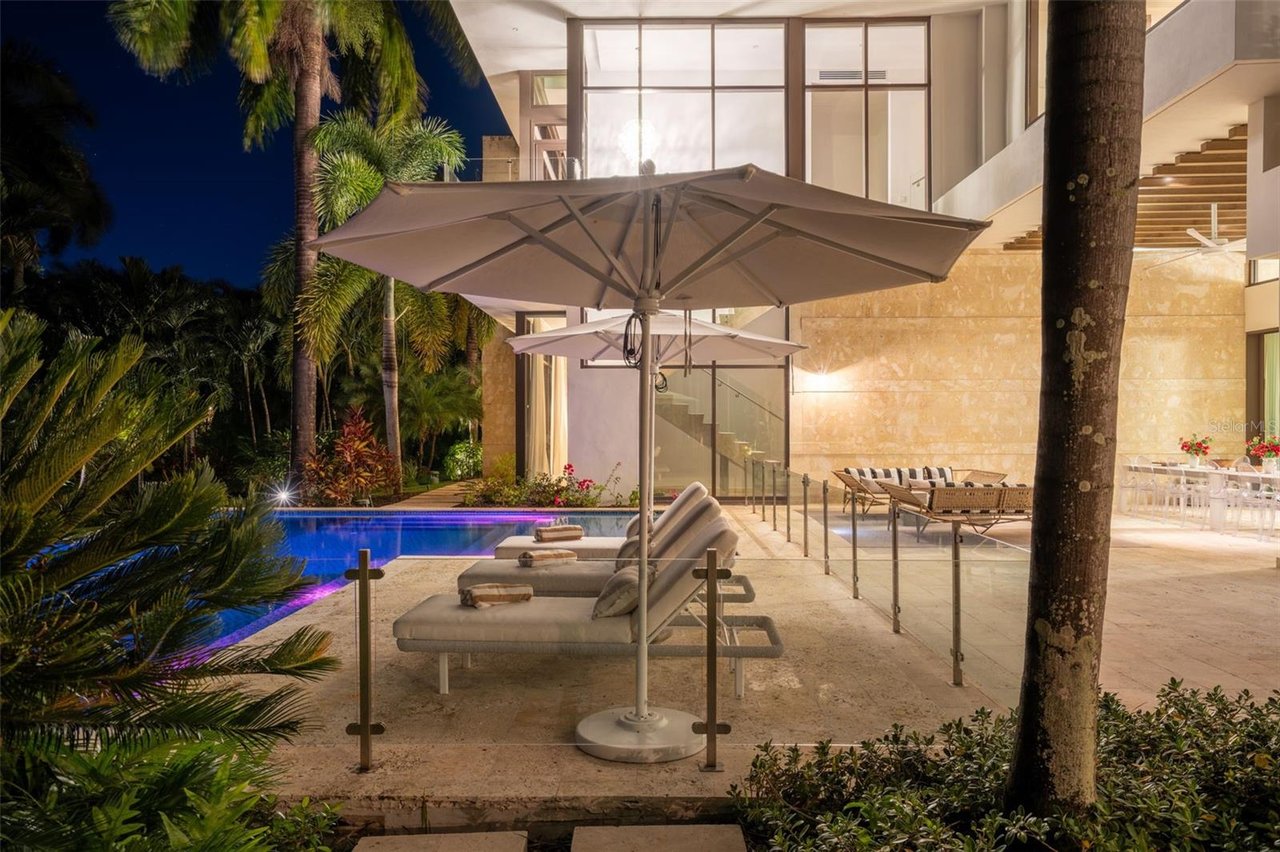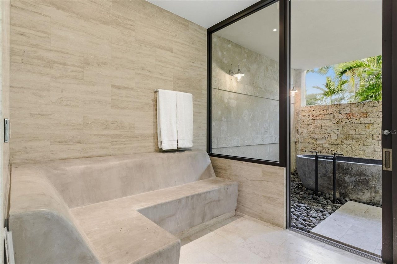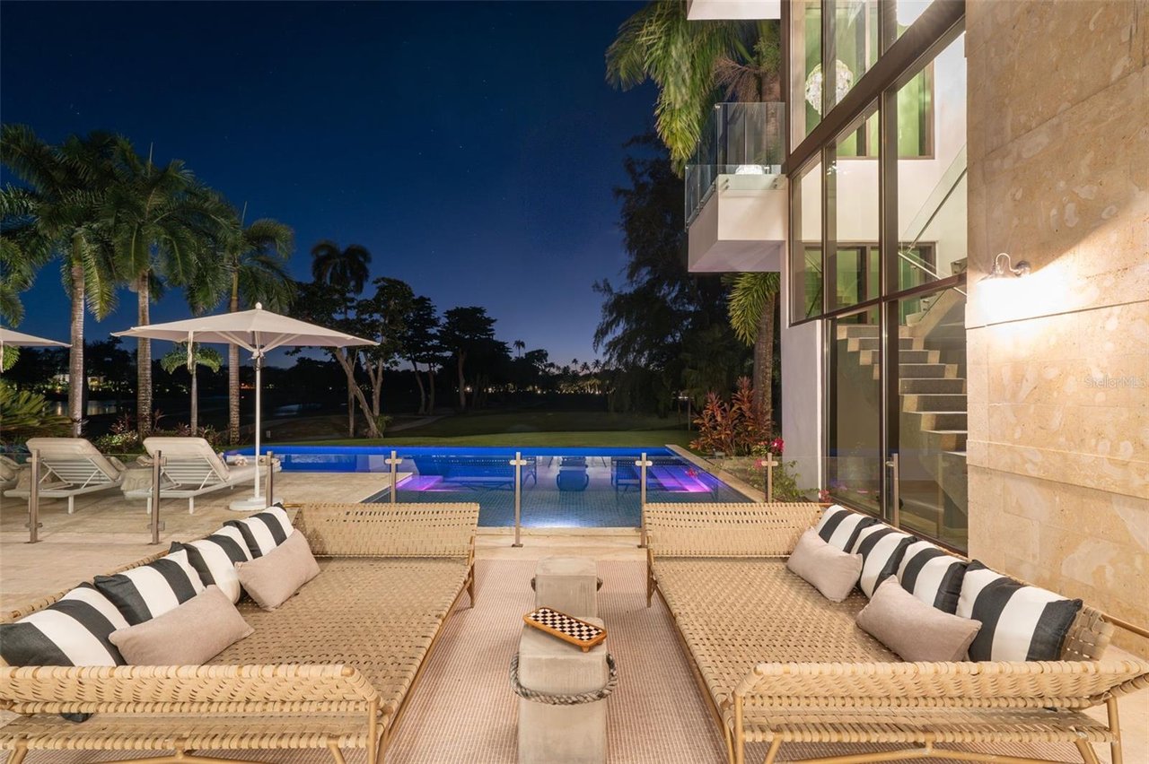 Outdoor living throughout the property is resort-inspired, offering multiple terraces, lounging areas, outdoor showers, curated tropical landscaping, a private sauna, and seamless indoor-outdoor connectivity. The architectural scale, refined finishes, and thoughtful design elements including imported stones, custom millwork, Baccarat fixtures, and smart-home features--create an atmosphere of unparalleled luxury.