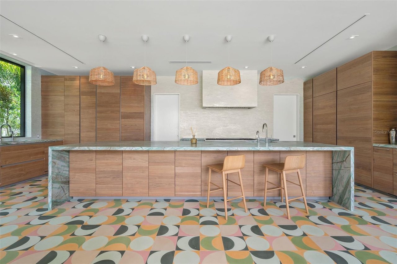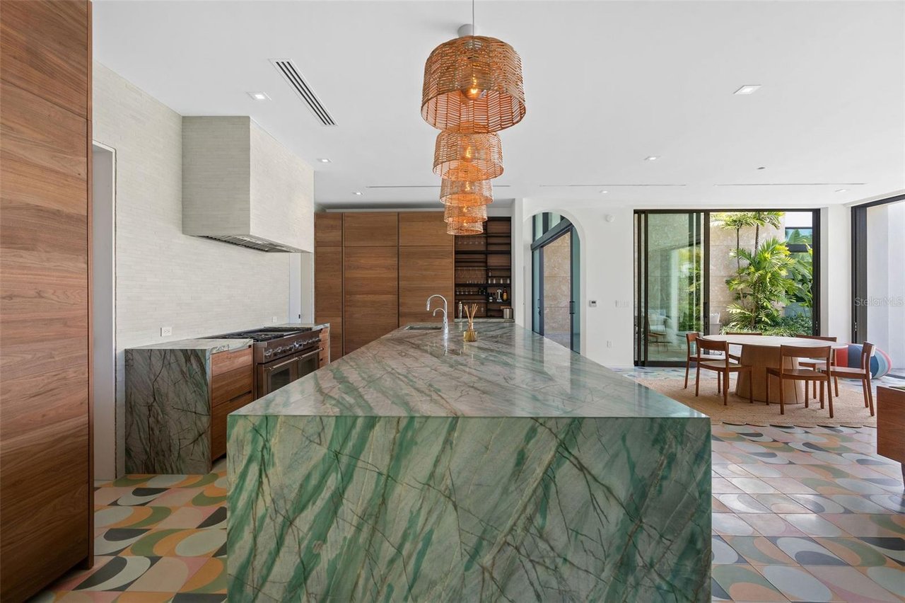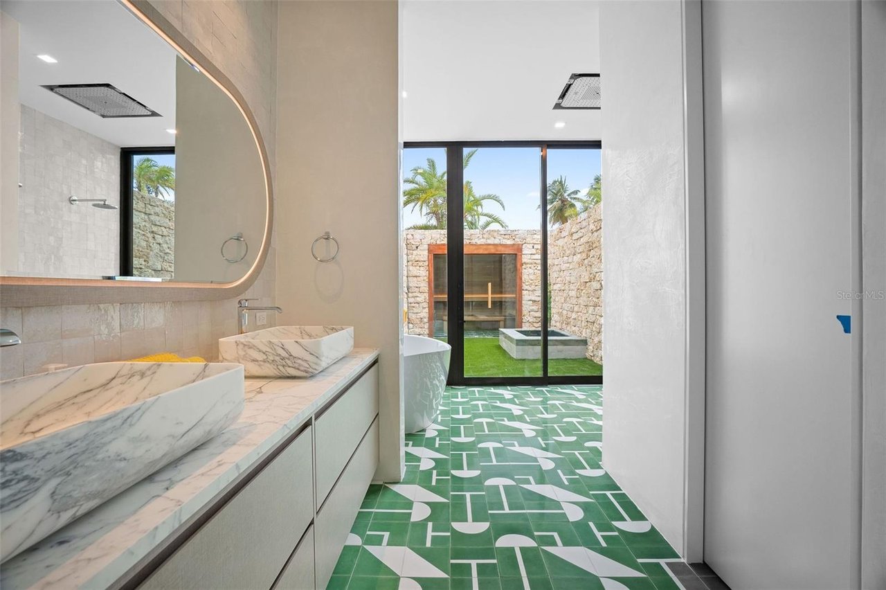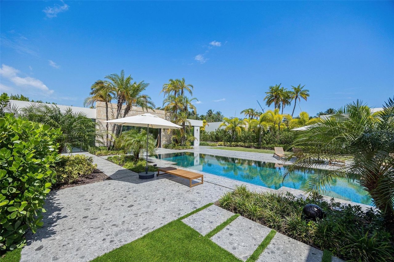 The focal point of the property is the magnificent elongated heated pool, with the detached casita situated to face its beauty. The casita itself is a serene retreat, featuring a private bedroom and full bath, as well as a cozy living room, full kitchen, complete gym, and a pool bathroom with an outdoor shower.