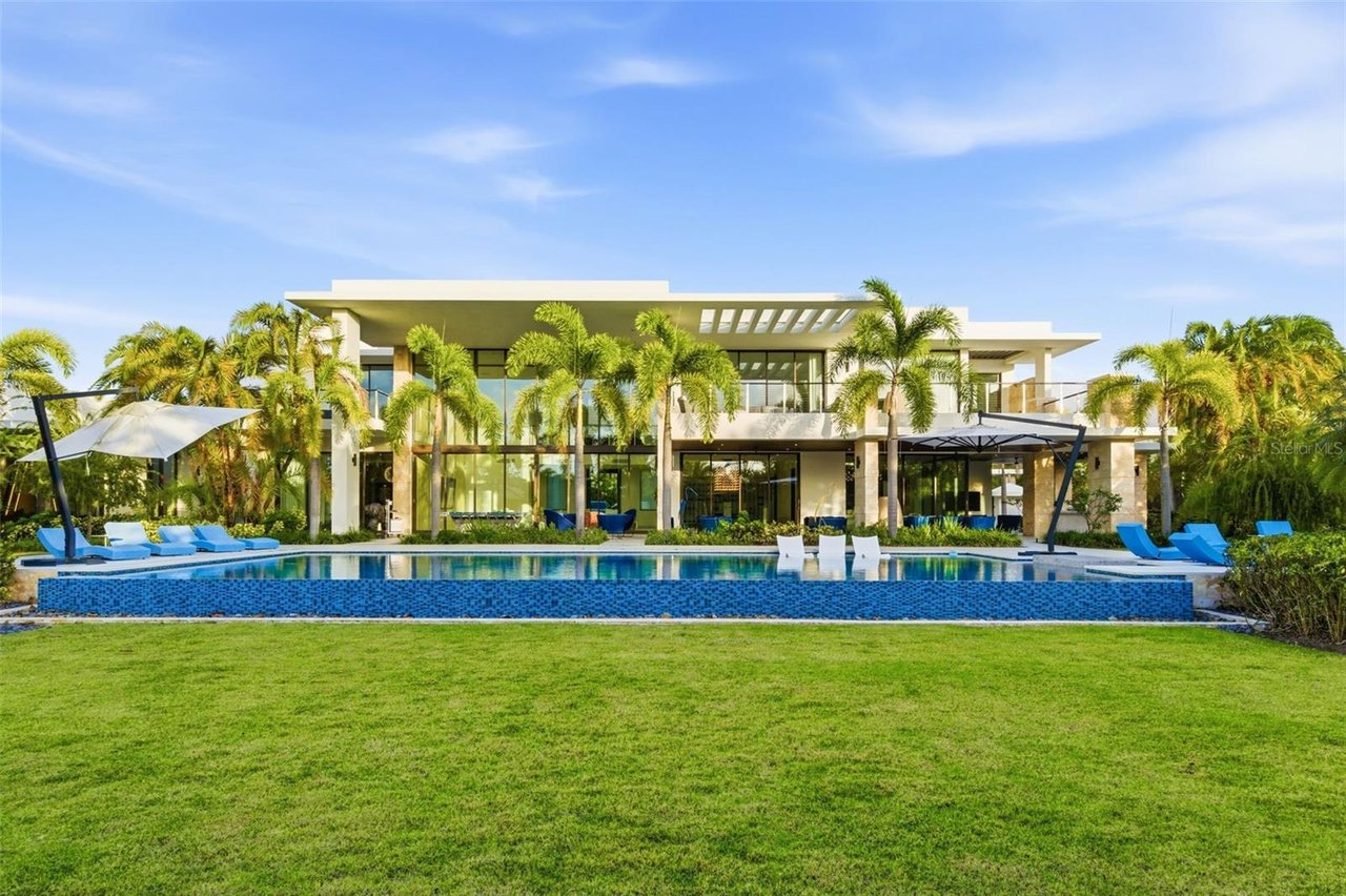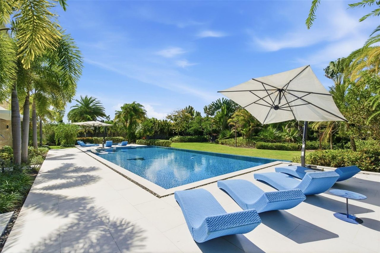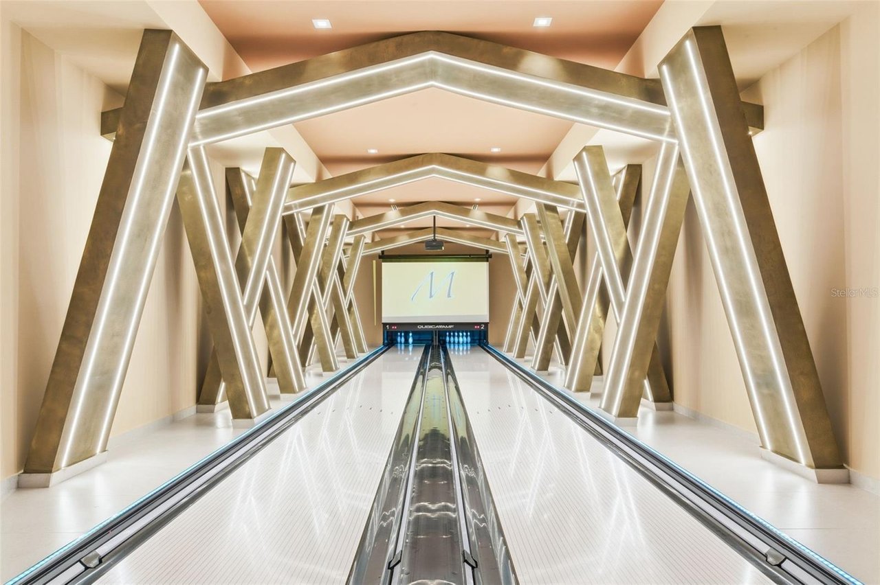Offering approximately 16,746 square feet of total construction, the estate has been thoughtfully conceived to accommodate refined daily living as well as high-level entertaining. Bespoke amenities include a private two-lane bowling alley, a half basketball court, and a series of elegant indoor and outdoor gathering spaces. The exterior environment is anchored by a resort-style pool, a covered outdoor BBQ grill and kitchen, and a poolside dining area designed for seamless entertaining.